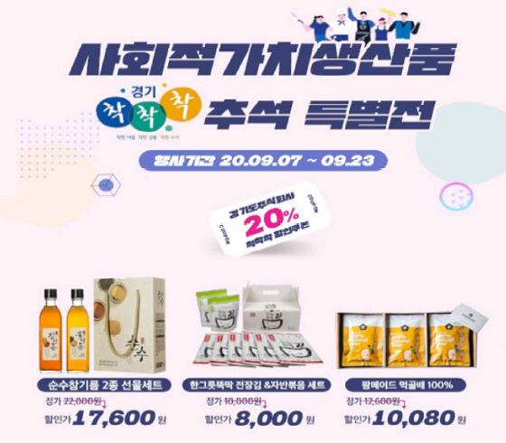 경기도와 경기도주식회사가 민족의 명절 추석을 맞아 9월 7일부터 23일까지 ‘경기도 사회적가치 생산품 착착착 추석 특별전’을 진행한다.