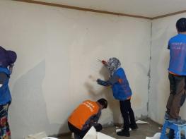 동구지역 35세대 중 건조가 완료된 12세대에 대해서는 도배·장판 등 1차 집수리를 완료했으며, 6일부터 전문봉사자들을 모집해 건조 상태에 따라 2차 집수리 봉사활동에 들어갔다.