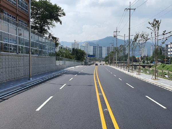 이번 공사는 총사업비 70억원을 들여 연장 760m 구간을 2차로에서 4차로로 확포장하는 사업으로 9월 중순 개통 예정이다.