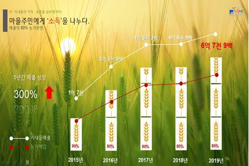 2019년에는 6억 7천만 원의 매출액을 기록했으며, 매출액의 80%는 지역주민과 나눈다.