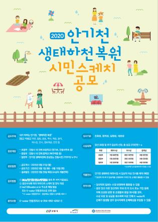 안동시와 한국수자원공사 안동권지사, 경상북도안동교육지원청은 「물순환도시 안동」 조성사업에 시민의 의견을 수렴하기 위하여 ‘2020 안기천 생태하천 복원 시민스케치 공모’를 실시한다.