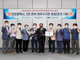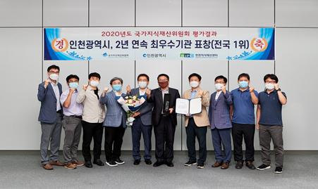 인천시가 2019년도에 이어 2년 연속 지식재산 분야‘최우수’기관으로 선정되어 국가지식재산위원회 위원장 기관표창을 수상했다.