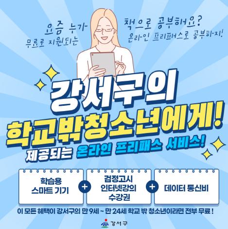 서울 강서구(구청장 노현송)는 학업 중단으로 어려움을 겪고 있는 청소년을 대상으로 ‘온라인 프리패스 학습 지원’을 추진한다고 밝혔다.