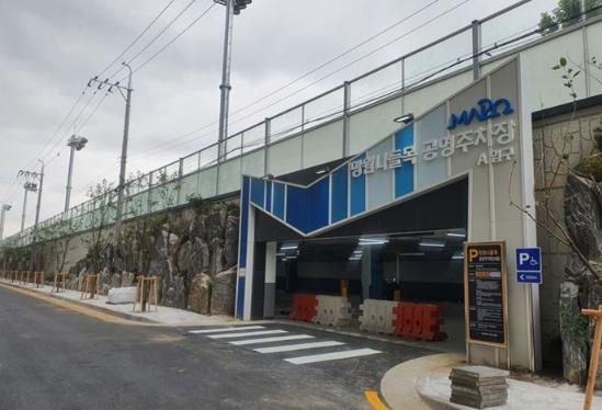 망원동 460-5번지 일대에 준공된 망원나들목 공영주차장은 A동 62면, B동 141면 등 총 203면의 주차면수를 갖추고 있다.