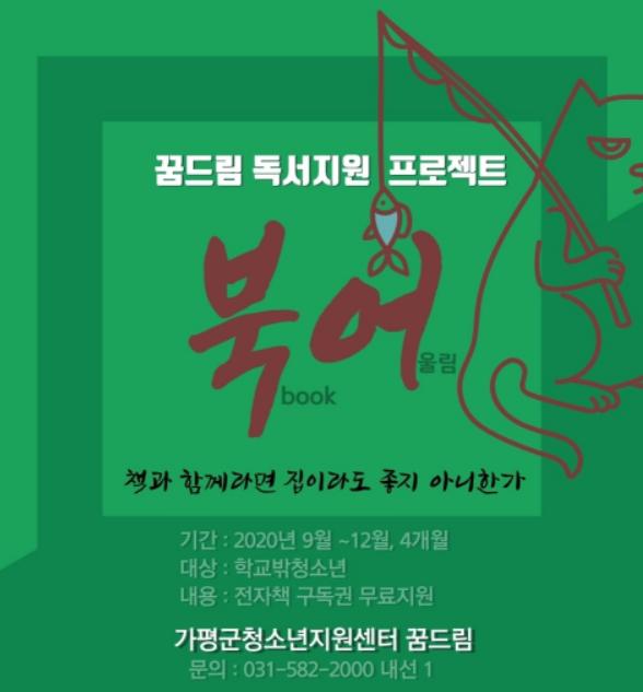 가평군청소년지원센터 꿈드림은 학교 밖 청소년에게 코로나 장기화로 인한 고립감 해소에 도움을 주고 집에서도 다양한 문화활동 및 체험을 접할 수 있는 기회를 제공하기 위해 전자책 구독권 제공 및 온라인 강좌 수강 등 다양한 비대면(UNTACT) 프로그램을 운영하고 있다.