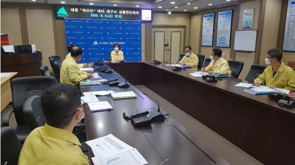 대구시는 제10호 태풍 ‘하이선(HAISHEN)’ 북상에 따른 태풍 대비 총력 대응태세 점검을 위해 4일 오후 4시 30분 김영애 시민안전실장 주재로 상황판단회의를 개최했다.