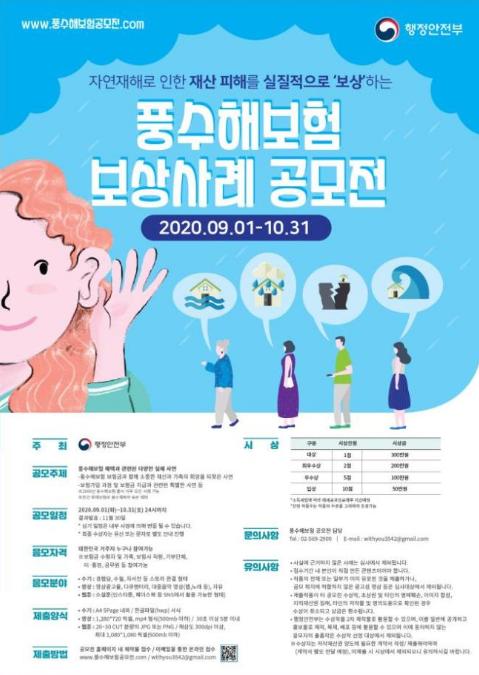 아울러 행정안전부에서는 풍수해보험 보상사례 공모전을 개최 중으로, 보다 자세한 내용은 풍수해보험공모전 홈페이지(www.풍수해보험공모전.com)에서 확인할 수 있다.
