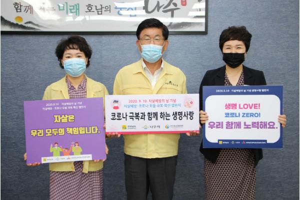 이후 나주시의회 김영덕 의장, 이광석 부의장, 김영식 보건소장, 김경민 나주시정신건강복지센터장, 최시영 나주시노인복지관장 등이 릴레이로 캠페인에 참여했다.