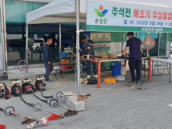 이번 특별점검은 안전사고 예방 차원에서 실시하는 것으로, 해마다 큰 호응을 얻었다. 순창군민은 물론 추석을 맞이해 벌초를 하러 고향을 찾는 귀성객들을 대상으로 동력예초기 점검을 실시하고 마모되어 교체가 필요한 소모성 부품인 예초기 날, 플러그 등을 교체해 줄 계획이다. 또한 동력예초기 사용법과 사고예방을 위한 안전교육도 실시해 예초기 안전사고 예방에도 노력할 방침이다.
