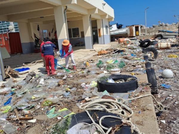 봉사단은 월파로 침수된 주택의 젖은 가재도구 씻어 말리기, 집 안밖의 수해쓰레기 제거와 골장항 환경정화 등 복구에 구슬땀을 흘렸다.