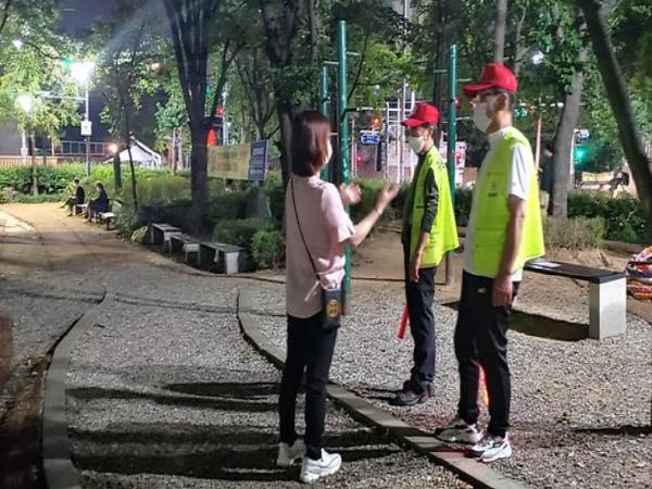 이번 순찰은 정부의 사회적 거리두기 방역 강화 조치로 야간 공원 이용객이 증가함에 따라, 주민의 불안을 해소하고 코로나19로부터 안전한 공원 이용 문화를 정착하기 위하여 실시하였다.