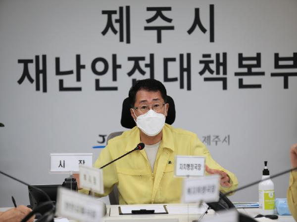 제주시에서는 제10호 태풍‘하이선’북상으로 인한 피해를 최소화하기 위해 9월 6일 12시 안동우 시장 주재로 상황 판단회의를 개최하여 태풍 대비 사전 조치사항을 점검하였다.