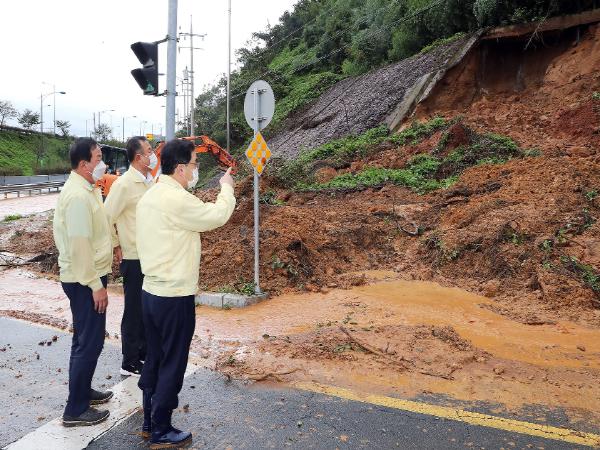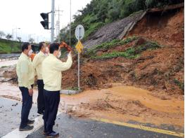 허 시장은 이날 진해구 어은동 도로사면 유실 현장을 비롯해 자은동 냉천중학교와 냉천초등학교 뒤 옹벽 토사 유실 현장을 잇따라 둘러봤다.