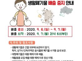 한편 생활폐기물 수집·운반 대행업체에서는 9월 8일까지 재활용품 요일배출 상관없이 모두 수거토록 할 예정이라면서