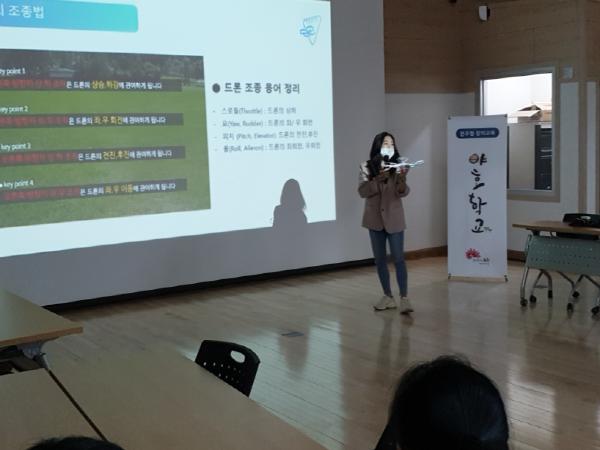 이와 관련 이날 첫 수업에서 참여한 청소년들은 △드론의 정의 및 역사 △드론 실습을 위한 항공안전법 상의 비행 시 주의사항 등에 대해 배웠다. 또, 드론축구를 조작해보는 실습도 이뤄졌다.