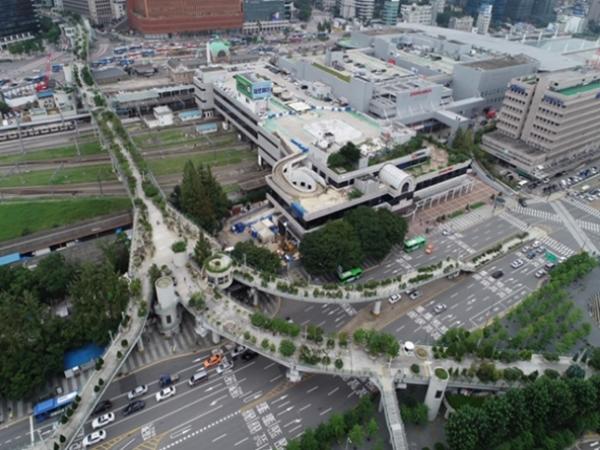 오는 10월 구서울역사 옥상에서 서울로7017로 바로 연결되는 폭6m, 길이 33m의 ‘공중보행로’가 개통된다. 아울러, 주차장이었던 약 2,300㎡(700평) 규모의 구(舊) 서울역사 옥상은 서울역 일대를 조망하면서 여유롭게 쉴 수 있는 도심 속 ‘그린 루프탑’으로 변신한다.