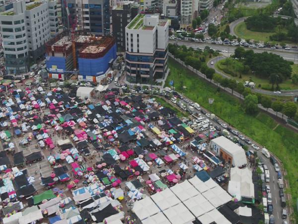 중원구 성남동 4929 일원 여수공공주택지구 내 1만7천㎡ 규모 주차장에 546개 점포가 차려져 장이 선다. 휴게공간, 지하 1층~지상 2층의 지원센터, 화장실 등의 부대시설(5575㎡)도 갖췄다.