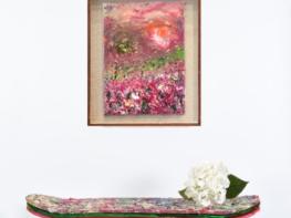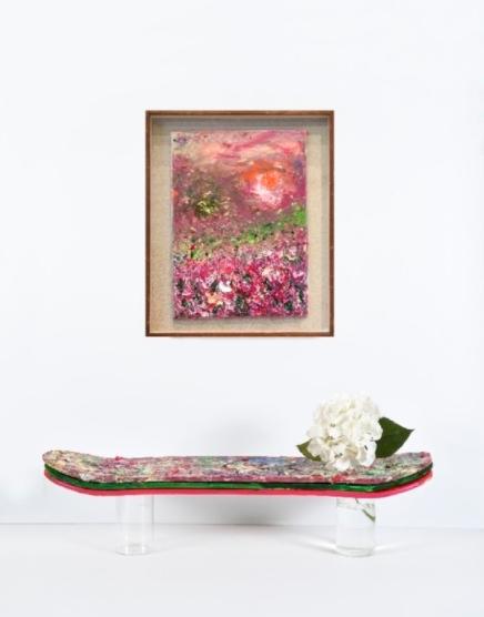 솔비가 출품한 '팔레트 정원'은 작품이 탄생하기 전 화가의 고민과 과정을 스케이트보드 위에 그대로 담았다. 그 마음을 꽃밭에 비유한 정원으로 표현했다.
