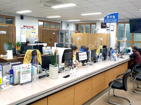 이번 설치된 가림막은 침방울 등 감염 매개체를 차단하여 방역 안전성을 높이는 한편, 투명 아크릴 소재로 가림막 아래로 서류를 주고 받을 수 있어 민원인과 소통에도 최대한 불편함이 없도록 설치하였다.