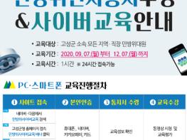 교육 기간은 9월 7일부터 12월 7일까지이며 고성군청 홈페이지 배너를 통해 접속하거나 한국공교육원 홈페이지(www.cmes.or.kr)에 접속한 뒤, 본인인증을 거쳐 1시간 교육을 수강하고 평가를 마치면 올해 교육을 이수하게 된다.
