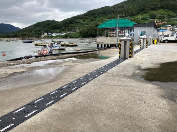 남해군은 이 일대에 방파제 보강 공사를 시행하는 한편 9억 원의 예산을 투입해 ‘전동식 파도막이’를 도입하기로 결정한다. 아직 도입된 적이 없는 방식이긴 했지만, 평산 지구에 적합한 시스템이기도 했다.