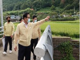 한정우 군수는 현장에서 교량 확장과 배수관 설치 등을 요구하는 주민의 목소리를 경청했고 개선사항과 향후 추진일정을 세심하게 점검했다.