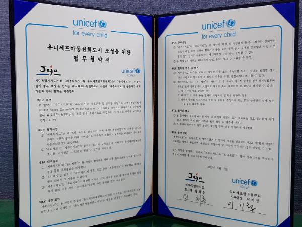 제주도는 이번 협약을 통해 유니세프 한국위원회의 ‘아동친화도시’ 프로그램에 동참하며, 유엔(UN) 아동권리협약을 기반으로 아동 권리 보호 및 증진을 위한 통합적 아동정책을 함께 추진해 나간다.