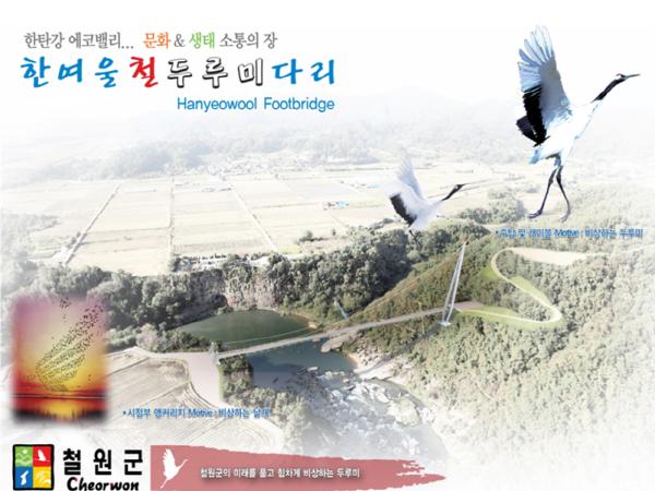 철원군은 한탄강 관광인프라 구축과 랜드마크 조성을 위해 추진하는 철원 한탄강 은하수교(The galaxy bridge)를 9월 말 준공할 계획이다.