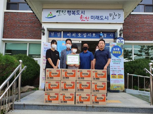 밀양시 청도면 인산리에 사는 김문공 씨의 자녀들(현희, 현진, 정훈)은 8일 청도면 행정복지센터에 라면 12박스(36만원상당)를 기부했다.