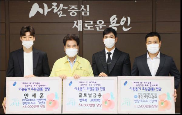 용인시는 8일 단체?기업?개인 등 3곳서 코로나19를 극복하는데 써 달라며 마스크 등의 물품을 기탁했다고 밝혔다.