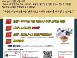 설문지를 작성한 사천시민 200명 대상으로 마스크, 소독용 물티슈, 마스크목걸이, 소독제, 간식, 홍보물품 등이 담겨있는 코로나19 키트를 집으로 배송한다고 한다.