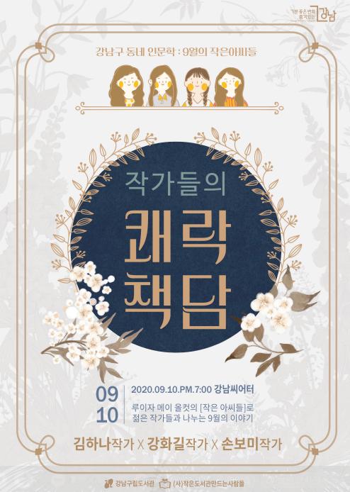 이번 행사는 강남구립도서관이 진행하는 인문학 콘서트 ‘강남구 동네인문학’의 일환으로, 3명의 젊은 작가를 초청해 고전소설 ‘작은 아씨들’을 소재로 가족과 삶의 가치 등에 관한 이야기를 나누고자 기획됐다.