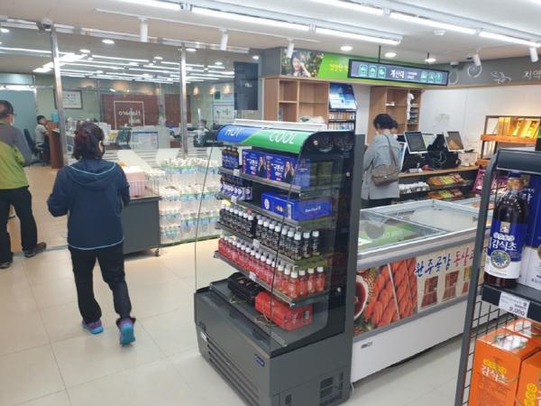 고산농협 동상지점은 소규모 하나로마트와 같은 형태로 각종 식료품과 생필품을 구비하고 있다.