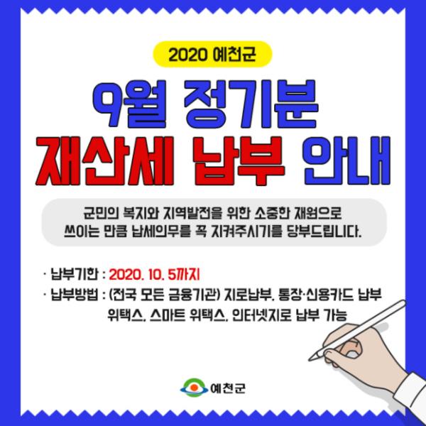 예천군 관계자는 “재산세는 군민의 복지와 지역발전을 위한 소중한 재원으로 쓰이는 만큼 납세 의무를 꼭 지켜주시기를 당부 드리고 다양한 납부 서비스를 제공하고 있으니 어디서든 편리하게 지방세를 납부하시기 바란다.”고 말했다.