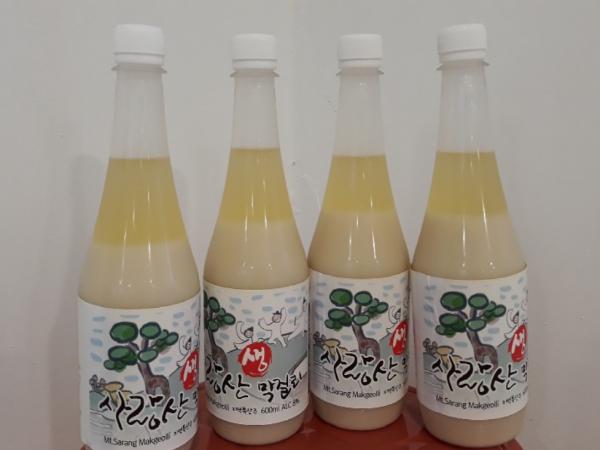 사랑산 막걸리는 알코올 도수 8%로 아스파탐과 같은 인공감미료를 첨가하지 않아 청량감과 부드러운 목 넘김을 자랑한다.