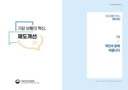 국민들의 바람과 생각을 담아 국민권익위원회(위원장 전현희)가 권고한 제도개선 사례들을 누구나 쉽게 확인할 수 있도록 제도개선 사례집 ?가장 보통의 혁신, 제도개선?이 발간·배포된다.