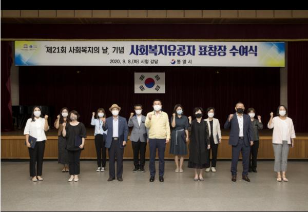 통영시는 9월 8일 ‘제21회 사회복지의 날’을 기념하여 통영시 사회복지 유공자에 대한 표창장 수여식을 개최했다.