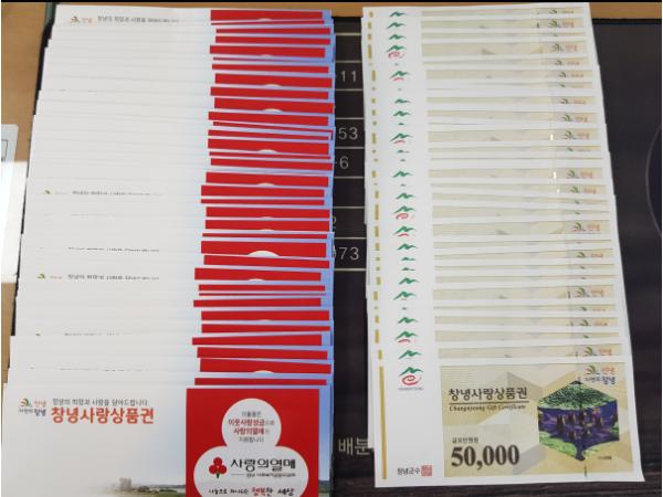 창녕군(군수 한정우)은 지난 4일 ㈜서호개발(대표 전동주)이 추석 명절을 맞이하여 관내 저소득 소외계층에 창녕사랑상품권 200만 원을 기탁했다고 밝혔다.