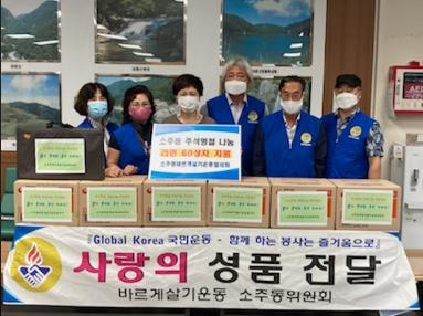 김욱진 소주동바르게살기운동협의회장은 “추석 명절을 앞두고 코로나19로 어려움을 겪고 있는 돌봄이웃들에게 따뜻한 손길이 전달되길 바라며 앞으로도 지역주민을 돌아보고 꾸준한 나눔을 실천할 수 있도록 노력하겠다”고 전했다.