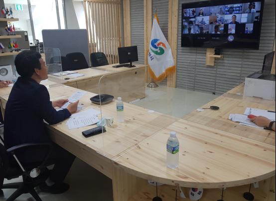 코로나19 2단계 격상에 따른 강화조치에 따라 창원컨벤션센터 내 비대면 상설화상 상담이 가능한 창원 큐피트센터에서 류효종 창원시 스마트혁신산업국장이 회의를 주재하였고 15명의 창원 ICT기업체 대표들은 사무실 등에서 온라인 접속을 통해 회의에 참여하였다.