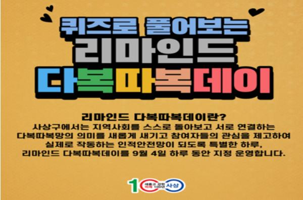 부산시 사상구(구청장 김대근)는 지난 4일 하루 동안‘퀴즈로 풀어보는 리마인드 다복따복데이’를 운영하였다.