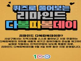 ‘퀴즈로 풀어보는 리마인드 다복따복데이’는 구축 4년차를 맞는 사상구 지역연대 인적안전망인 다복따복망(다 함께 행복하고 따뜻한 복지안전망)이 실제로 작동하고 있는지 점검하고, 적극적인 참여를 유도하기 위해 퀴즈를 풀어보는 특별한 하루 이벤트이다.