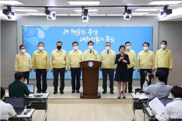 양승조 지사는 9일 도청 프레스센터에서 기자회견을 열고 이 같은 내용을 골자로 한 고위험시설 방역조치 변경 및 지원 방안을 발표했다.