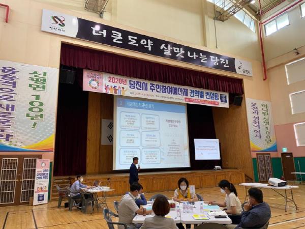 이번 컨설팅은 주민참여예산제 시민제안 공모사업이 연중 시행됨에 따라 주민참여예산위원과 지역주민을 대상으로 당진시 예산 방향 및 주민참여예산제에 대한 이해를 높이기 위해, 모둠별 분임토의를 통한 제안사업 직접 발굴, 우선순위 선정, 토론 및 발표 등의 순으로 코로나19 방역지침을 준수하며 진행됐다.