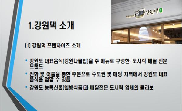 최종태 농업기술원장은“건강하고 특별한 한끼를 추구하는 고객대상으로 차별화된 전략상품에 강원도 이미지를 상품화하고 2024년까지 강원형 프렌차이즈 강원댁 13개소를 창업, 새로운 농가소득 창출에 도움을 되길 기대한다”고 밝혔다.