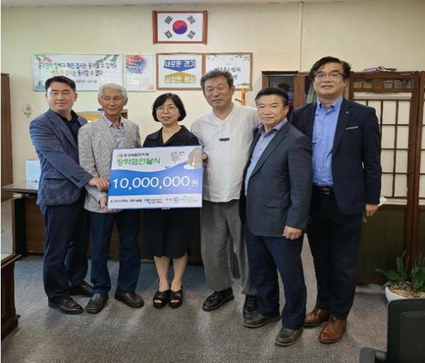 마중물대리는 8일 화성시 동부출장소에서 열린 전달식에서 (재)화성제일장학회에 1천만 원의 장학금을 기탁하고, 어려운 가정형편으로 학업을 중단하는 학생이 없도록 애써달라고 요청했다.