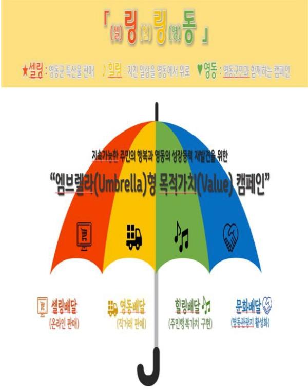 링링동 프로젝트는‘영동의 행복’,‘군민의 기쁨’이라는 주제로, 과일의 고장의 매력이 가득한 농특산물 판매와 다양한 문화행사들이 지역경제를 살리고 특별한 즐거움을 준다.