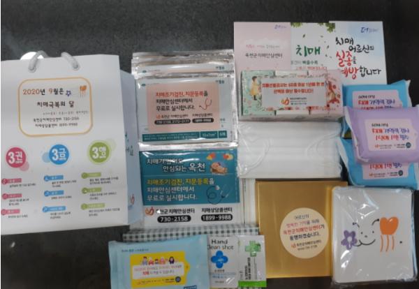 9월 한 달 간 치매선별검사를 받은 대상자에게 ‘치매극복! 코로나극복! 옥천행복!’이라는 슬로건으로 방역키트를 포함한 다양한 ‘복‘꾸러미’를 제공한다.(사진)