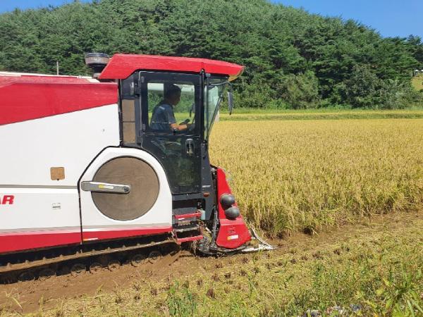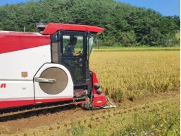이번 수확은 광품리 임종관씨의 3ha에서 논에서 생산하는 벼로 지역농협과 kg당 2,500원에 계약 재배하여 전량 출하한다.
