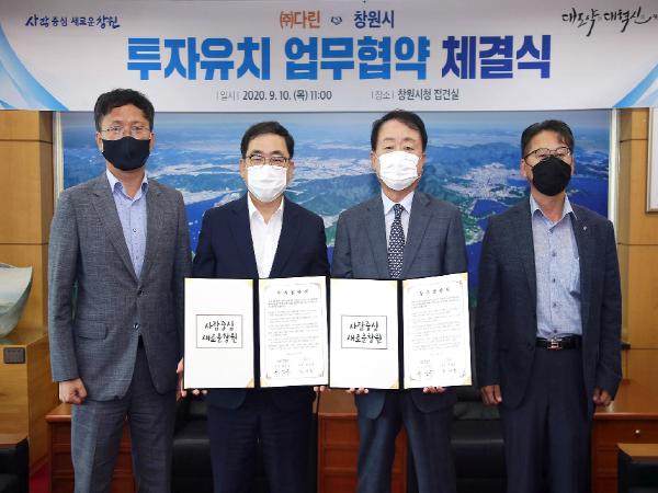 이날 협약식에는 허성무 창원시장과 ㈜다린 박계홍 대표, 전진모 경영지원본부장 등이 참석했다.